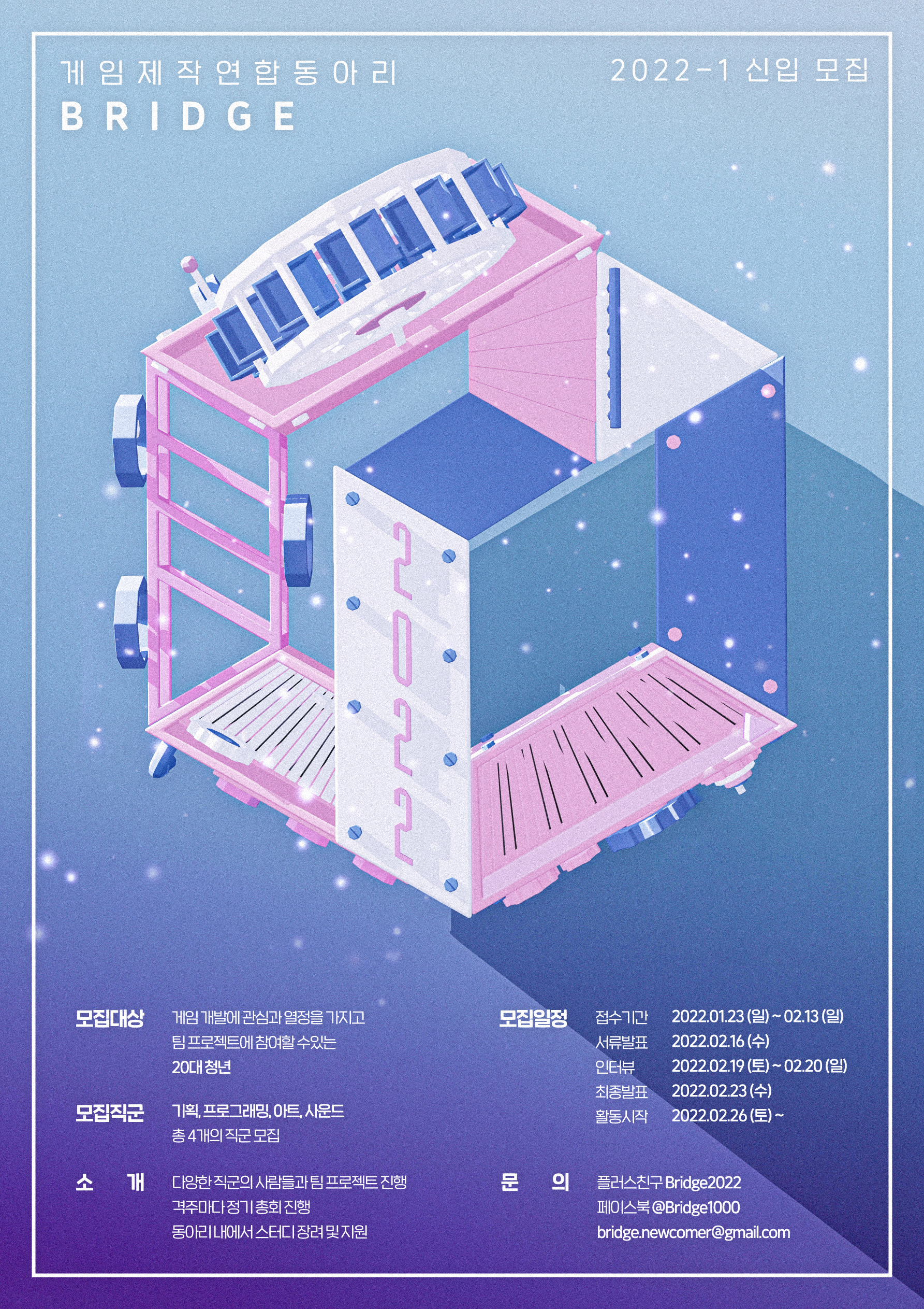 대학생 연합 게임 제작 동아리 BRIDGE에서 2022-1학기 신입생을 모집합니다!