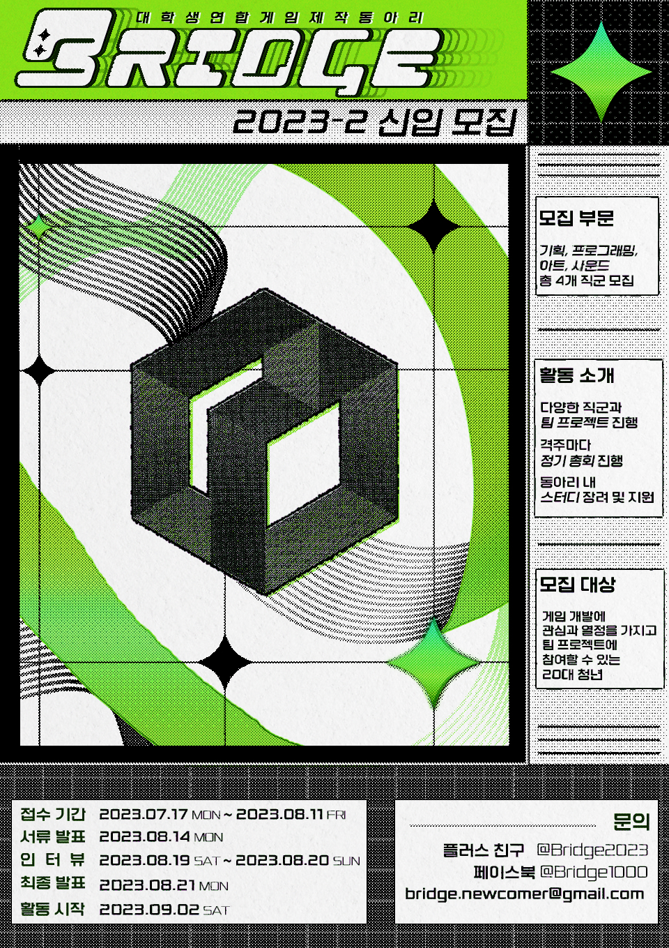 대학생 연합 게임 제작 동아리 BRIDGE에서 2023-2학기 신입 회원을 모집합니다🤗