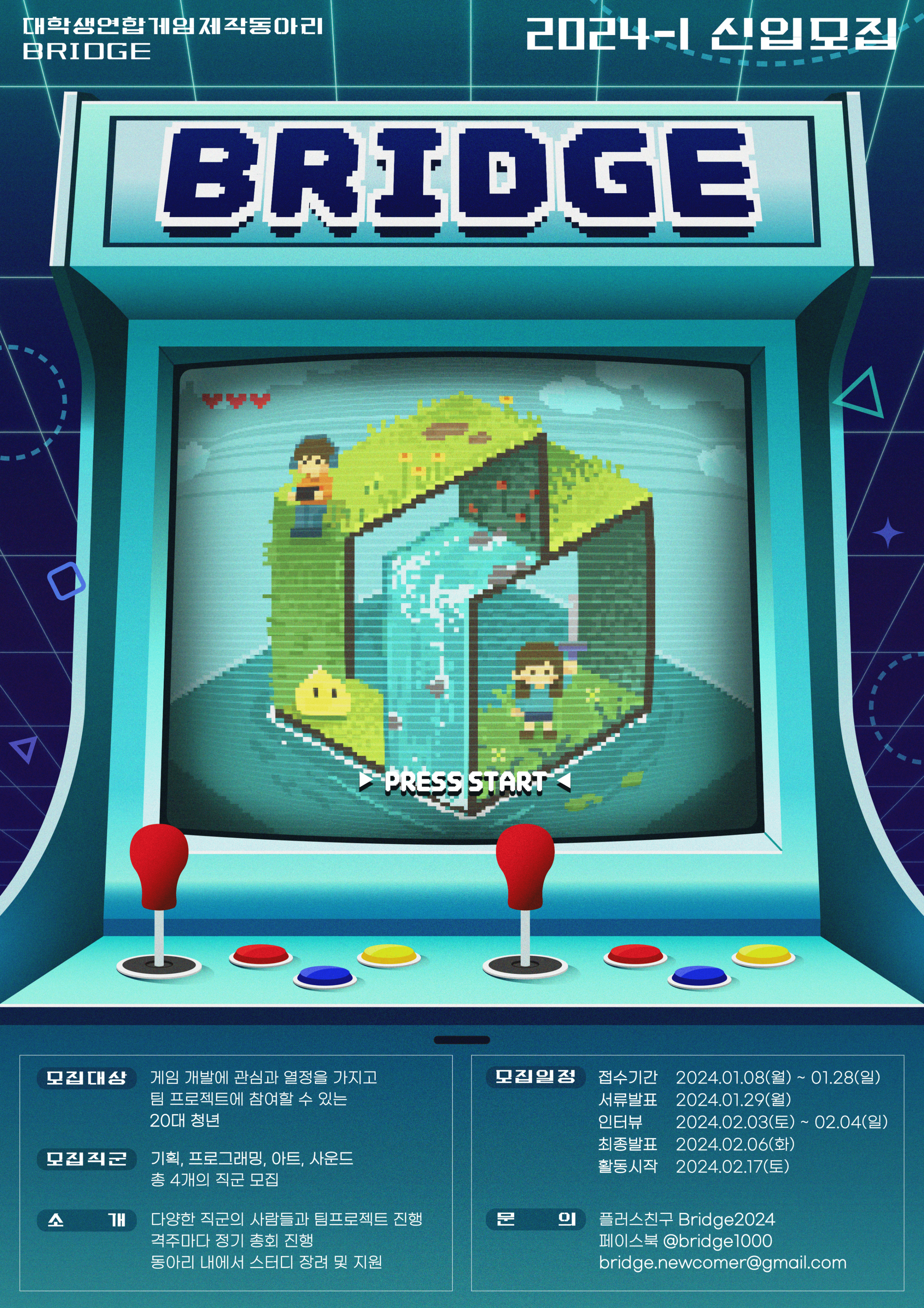 대학생 연합 게임 제작 동아리 BRIDGE에서 2024-1학기 신입 회원을 모집합니다🤗