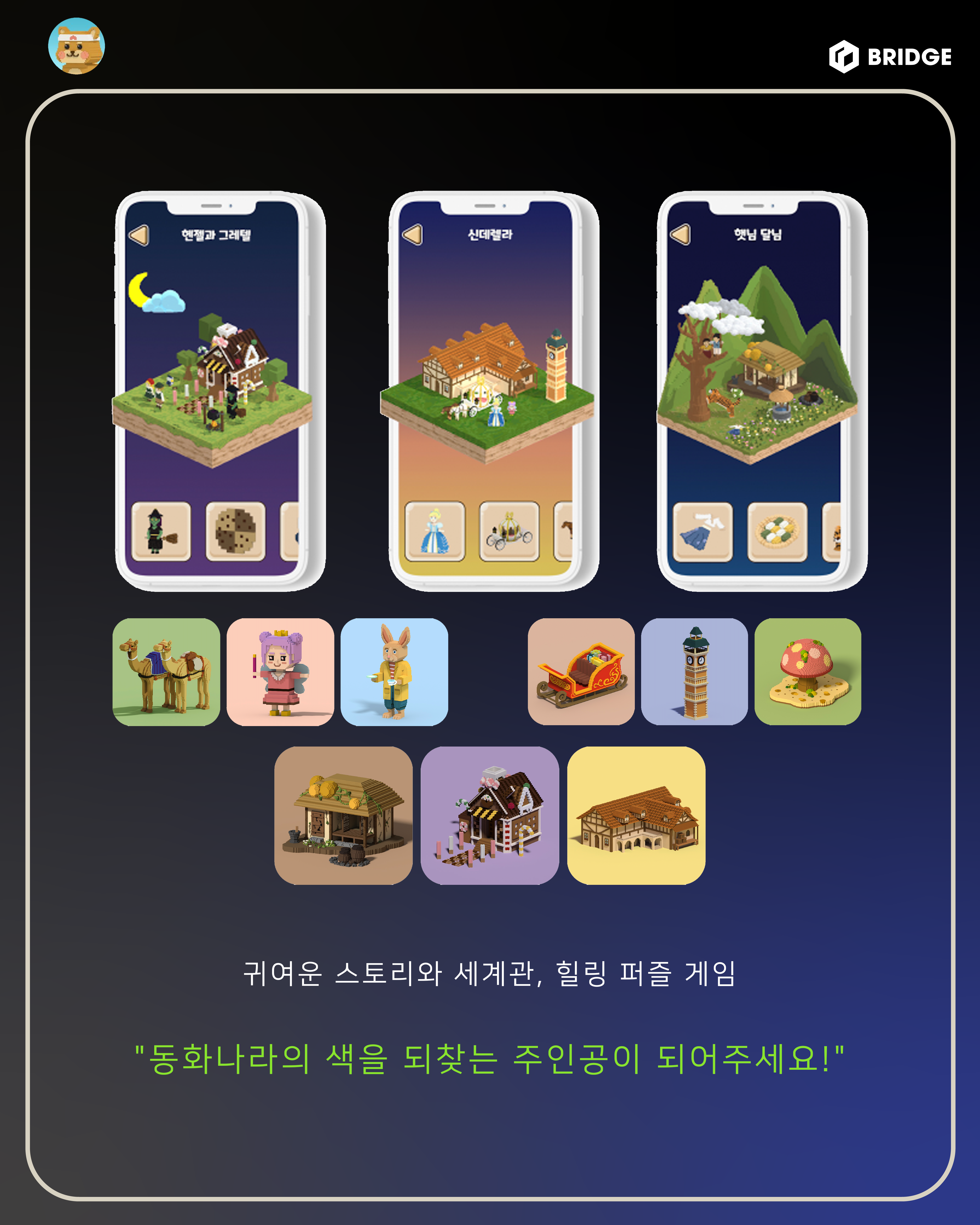조각나버린 블록을 조립해 동화나라의 색을 되찾고 마법의 책갈피를 모아주세요!