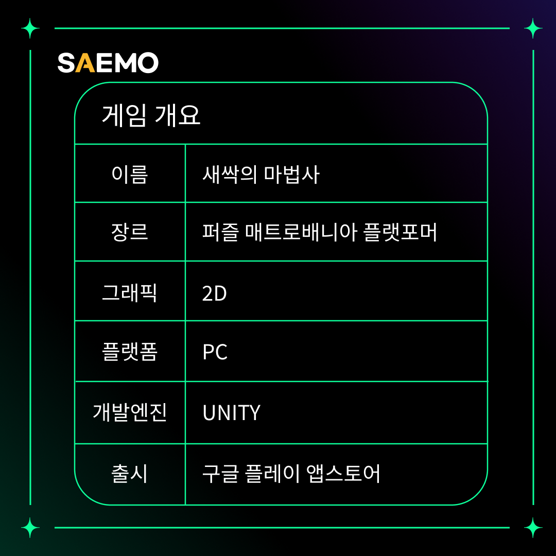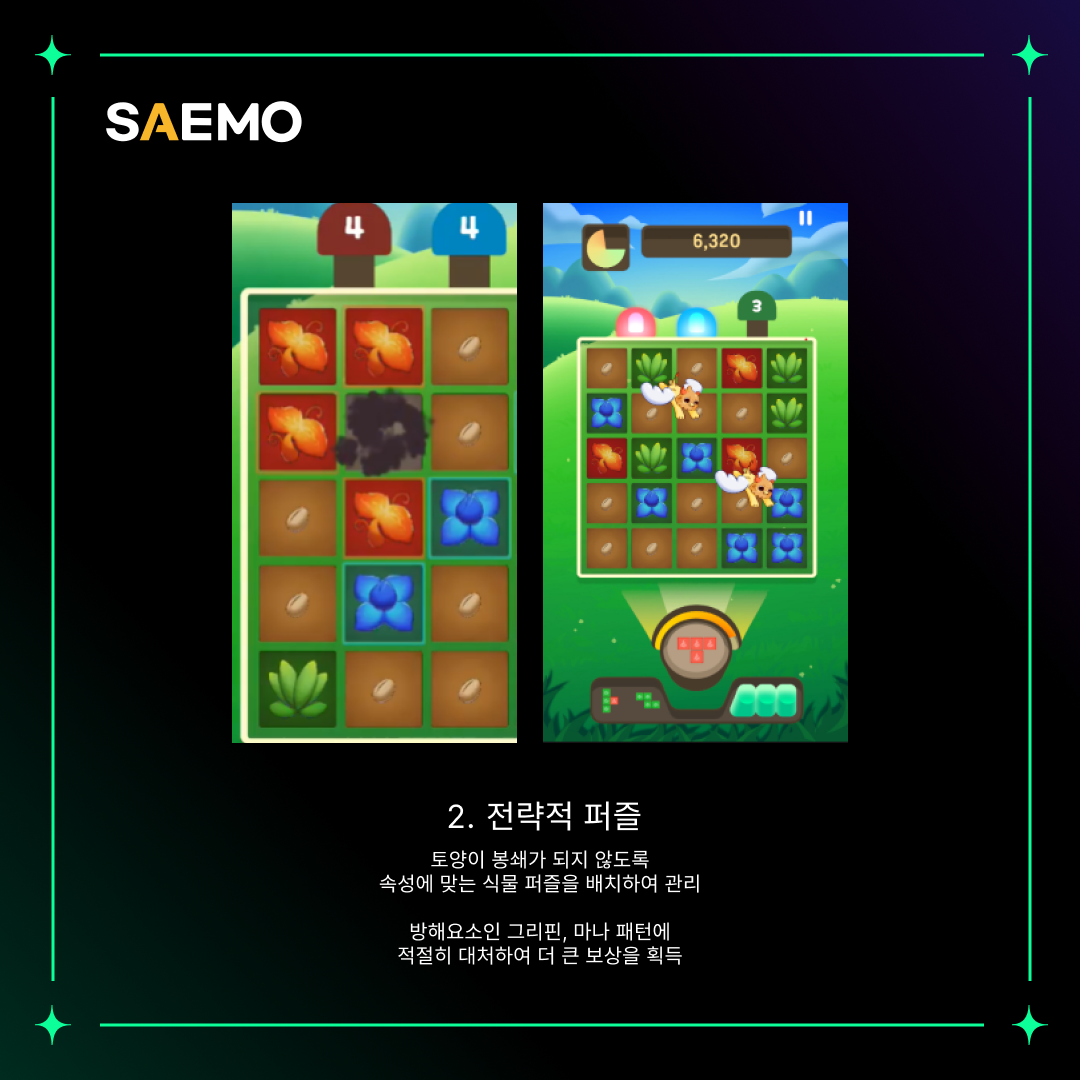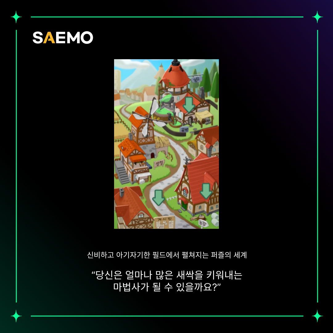 <새싹의 마법사>는 SAEMO 팀에서 개발한 아케이드 퍼즐 장르의 게임입니다.