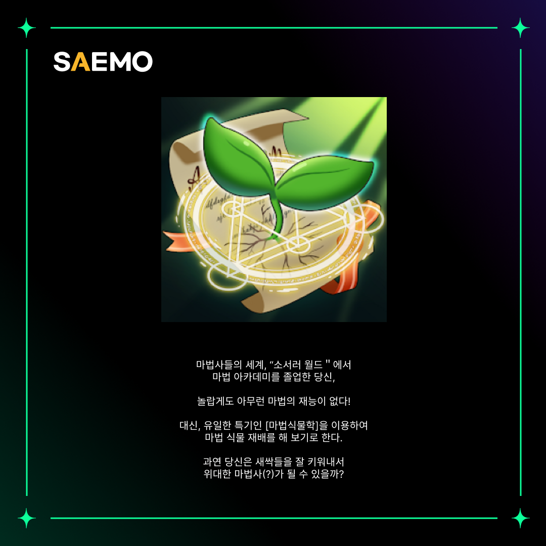 2024년 1학기에 제작한 'SAEMO'팀의 <새싹의 마법사>입니다.