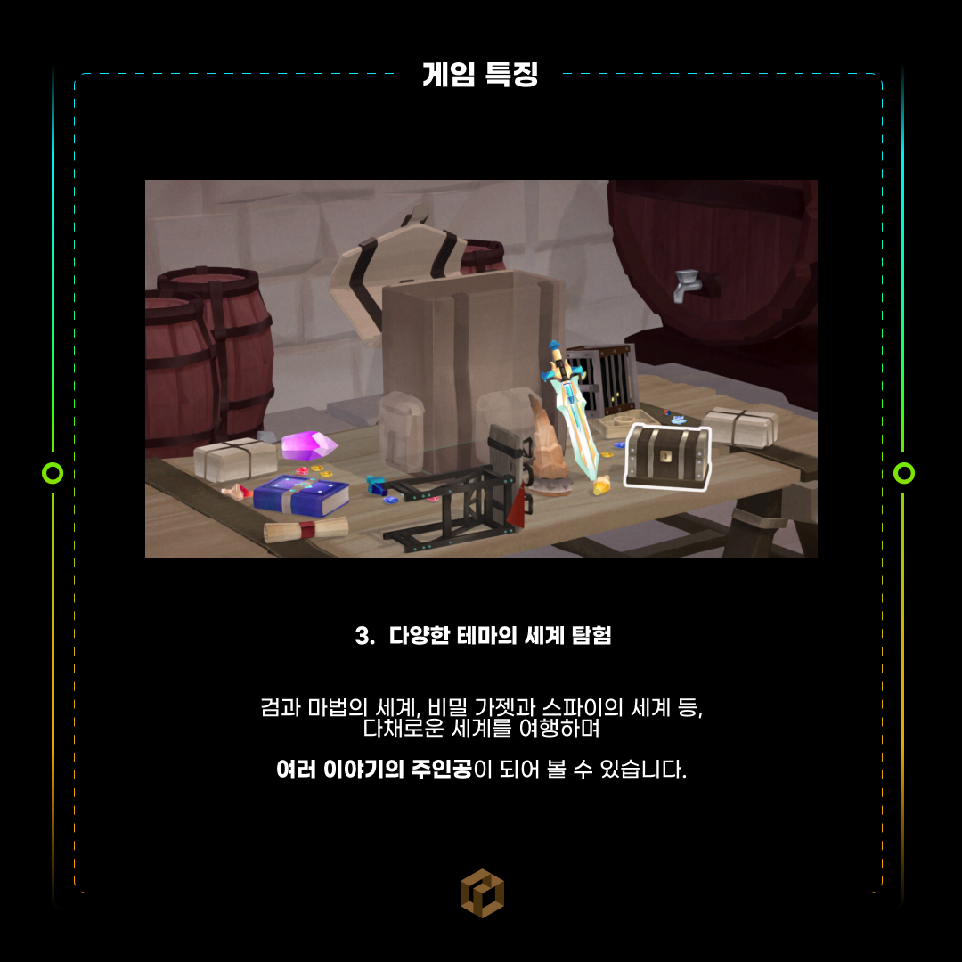 다채로운 세계를 여행하며 여러 이야기의 주인공이 되어 볼 수 있습니다.
