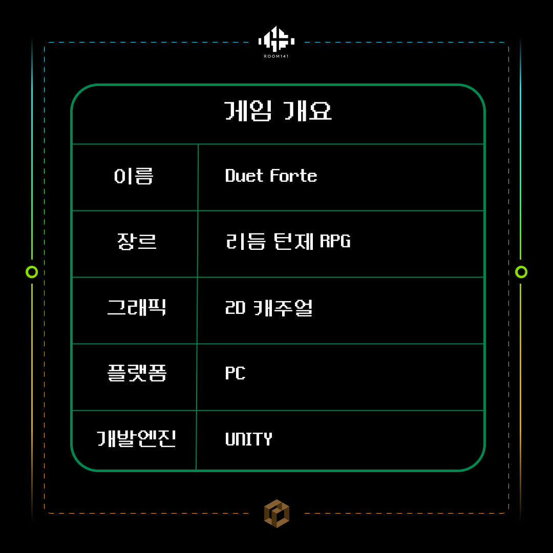 <Duet Forte!>는 'Room 141' 팀에서 개발한 캐주얼 리듬 턴제 RPG 장르의 게임입니다.