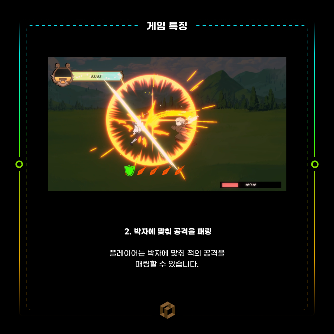 플레이어는 박자에 맞춰 적의 공격을 패링할 수 있습니다.