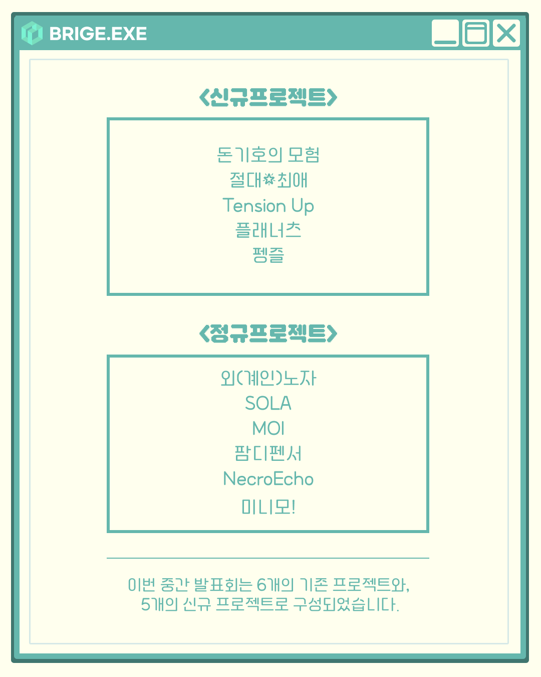 이번 학기에는 총 6개의 팀이 정규 프로젝트를 진행하고 있고, 그 중 5팀이 이번 학기부터 새롭게 신규 프로젝트를 진행하고 있습니다!