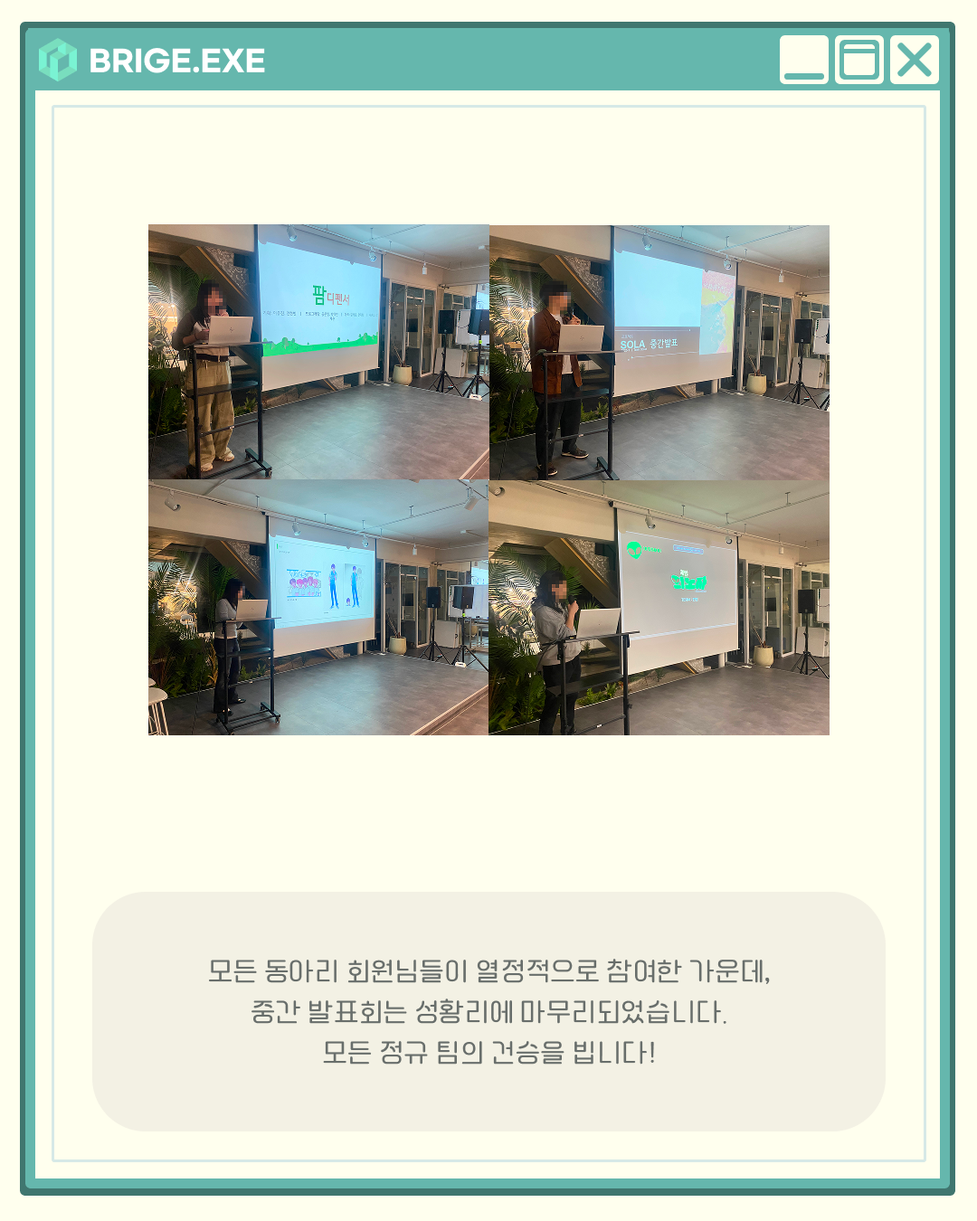 지난 5/17 토요일, 각 팀에서 진행 중인 정규 프로젝트의 중간 발표를 진행했습니다!