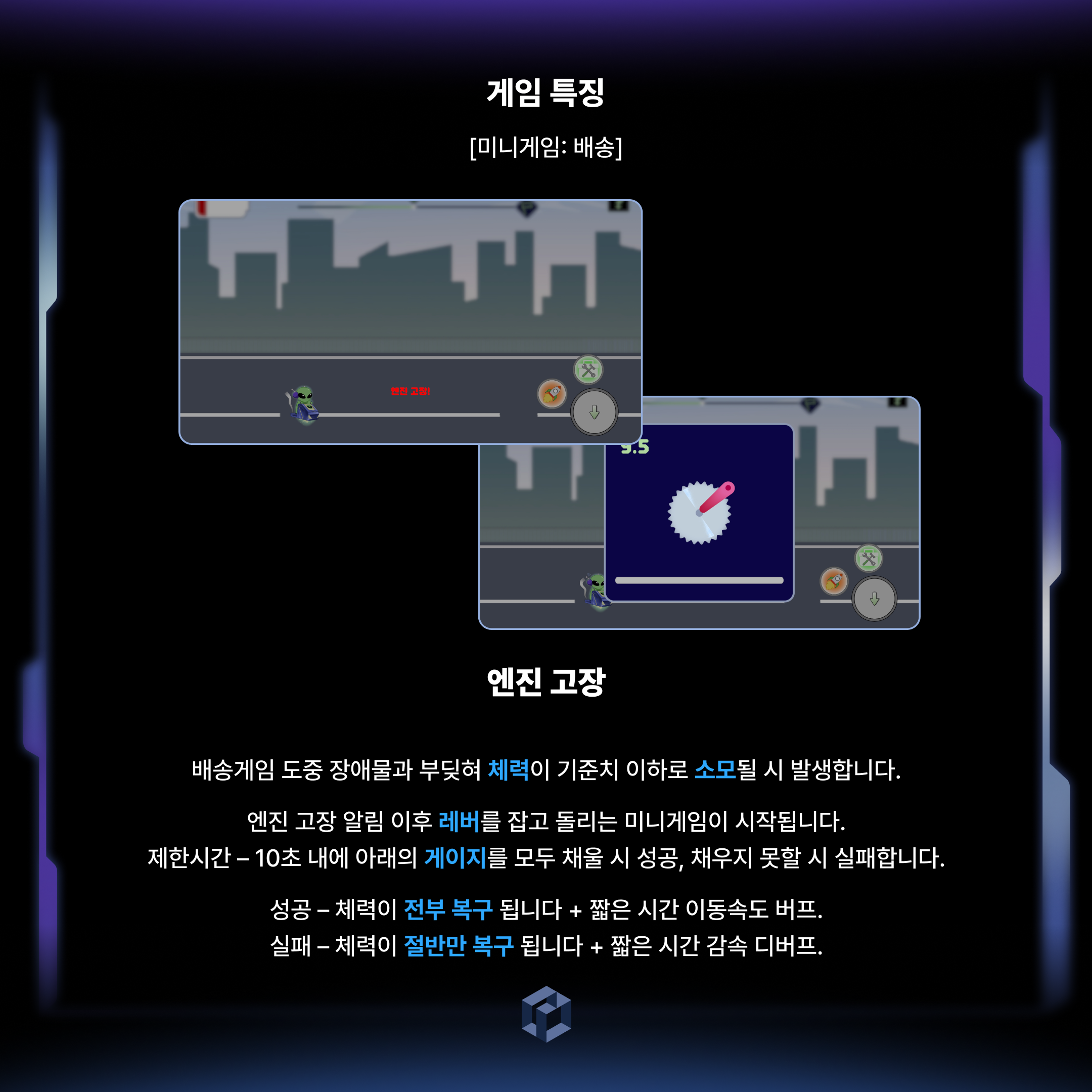 [미니게임: 배송]의 '장애물', '엔진 고장', '다채로운 스킬'